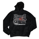 Hoodie: Gildan Adult Fleece Hoodie Sweatshirt with medium graphic center chest, and large graphic on back.