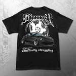 Tee: Gildan Adult Softstyle CVC Short Sleeve Tee with medium graphic center chest, and large graphic on back.