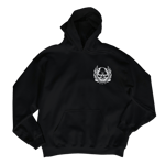 Hoodie: Gildan Adult Fleece Hoodie Sweatshirt with small graphic left chest, and large graphic on back.